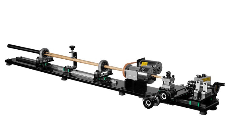 [Spindle]: The spindle through hole of the pool cue lathe is 20mm, and it adopts a 100mm linkage three-jaw chuck with an accuracy of 0.001-0.002 inches. It adopts a double tail drag bearing seat design with good stability and high precision. The middle drag plate and tail seat can move left and right on the guide rail to a limited extent;