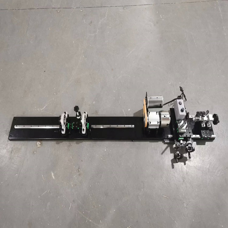Single track pool cue repair machine, single track double tailstock, more stable, 6 core functions: changing the head, changing the copper hoop, changing the first angle,  polishing, cue straightening. Comes with a 3-jaw chuck, sheet metal bed, precision slide rails, and pure copper wire speed control motor.