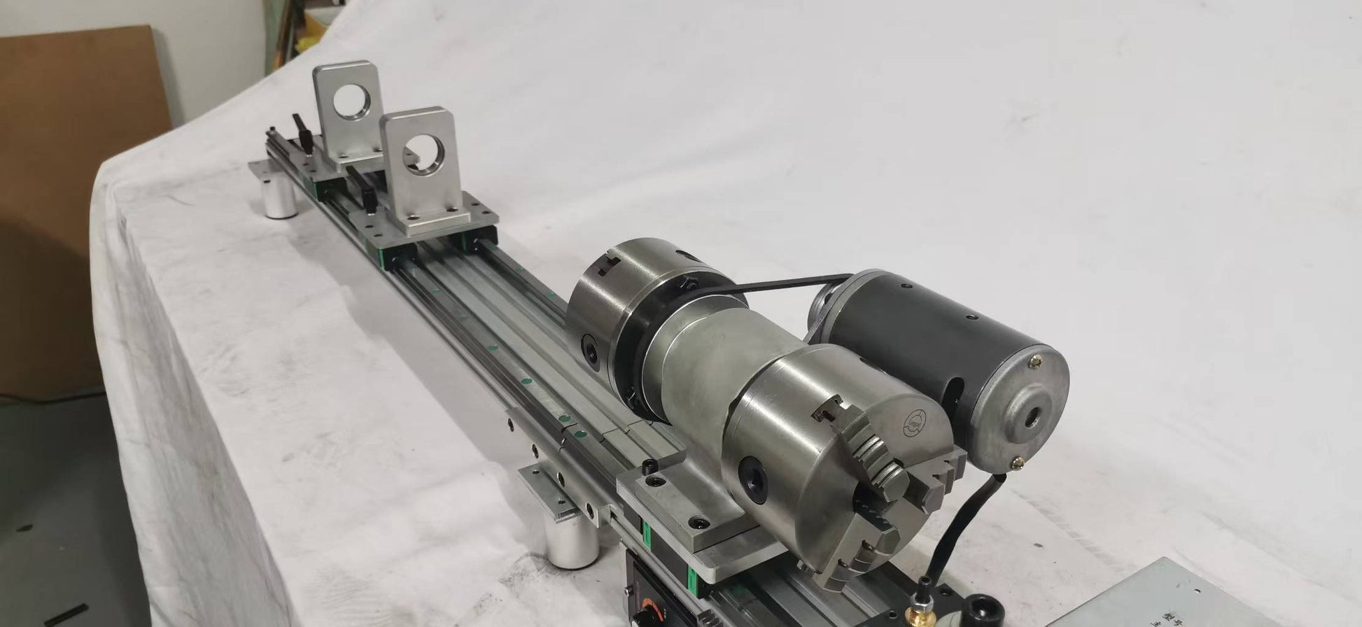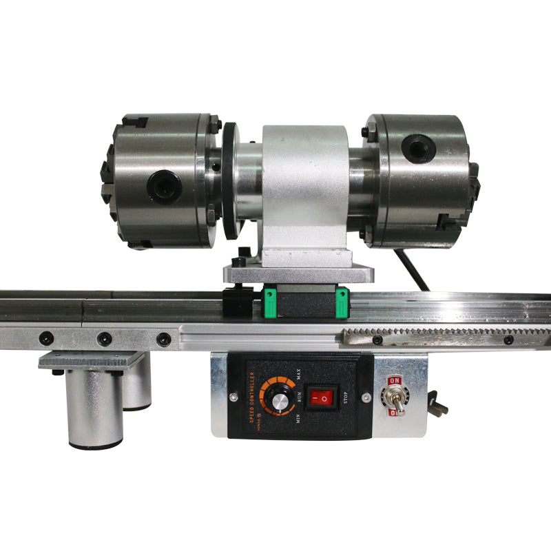 【スピンドル】:ビリヤードキュー旋盤のスピンドル貫通穴は32mmで、100mmの高精度リンケージ式三爪チャックとダブルテールベアリングシート設計を採用し、精度は0.001インチです。キューをクランプする際の安定性と同心度が高く、各部品はガイドレール上で左右に可動し、広い動作空間を備えています。